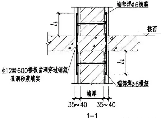 鋼筋網(wǎng)水泥砂漿面層加固磚墻示意圖