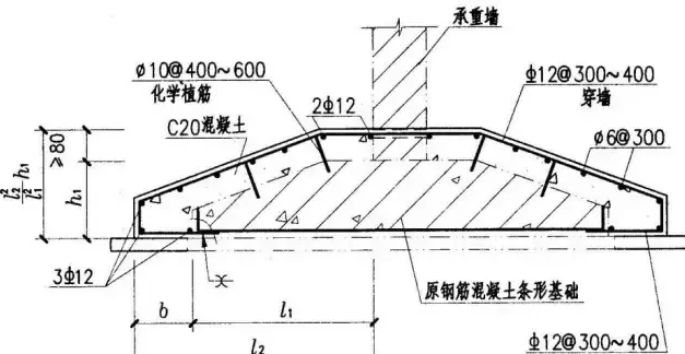 基礎(chǔ)加大底面積示意圖